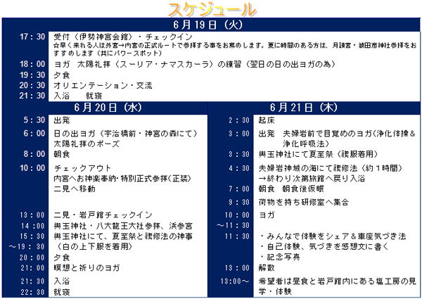 ※6/20(水)の昼食代と伊勢-二見のタクシー代(1台約\3,000を人数割り)は費用に含まれません。
